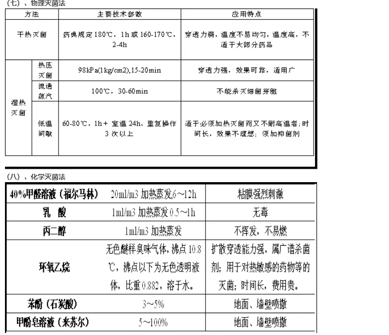 方法:濕熱滅菌法、干熱滅菌法、輻射滅菌法、氣體滅菌法、過(guò)濾除菌法。